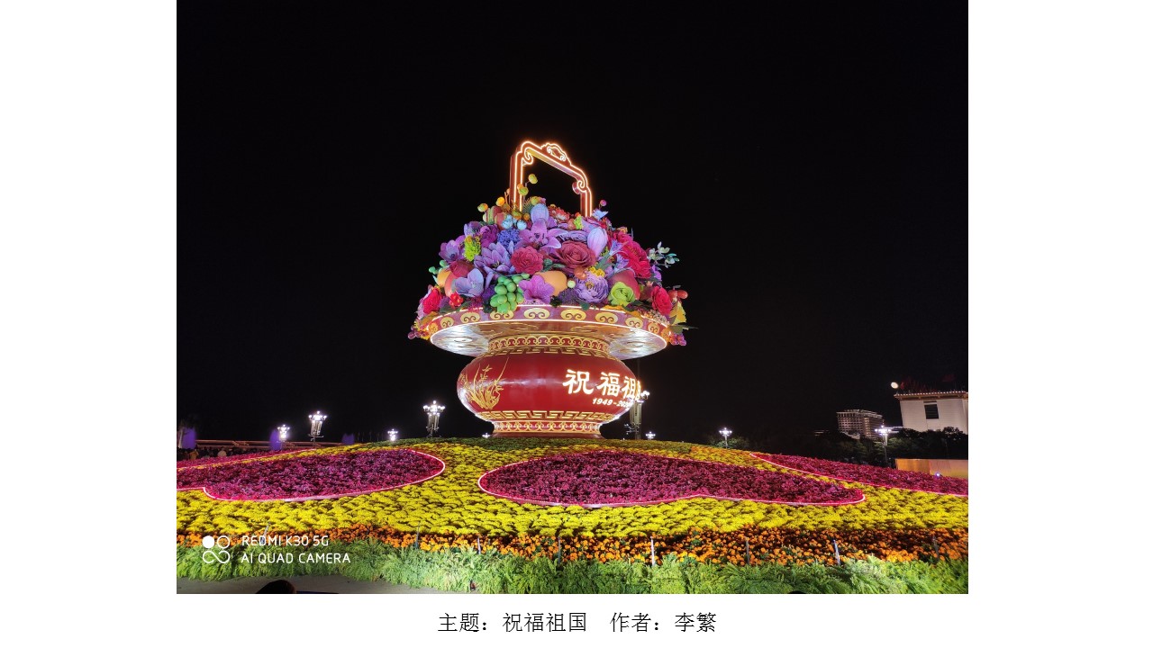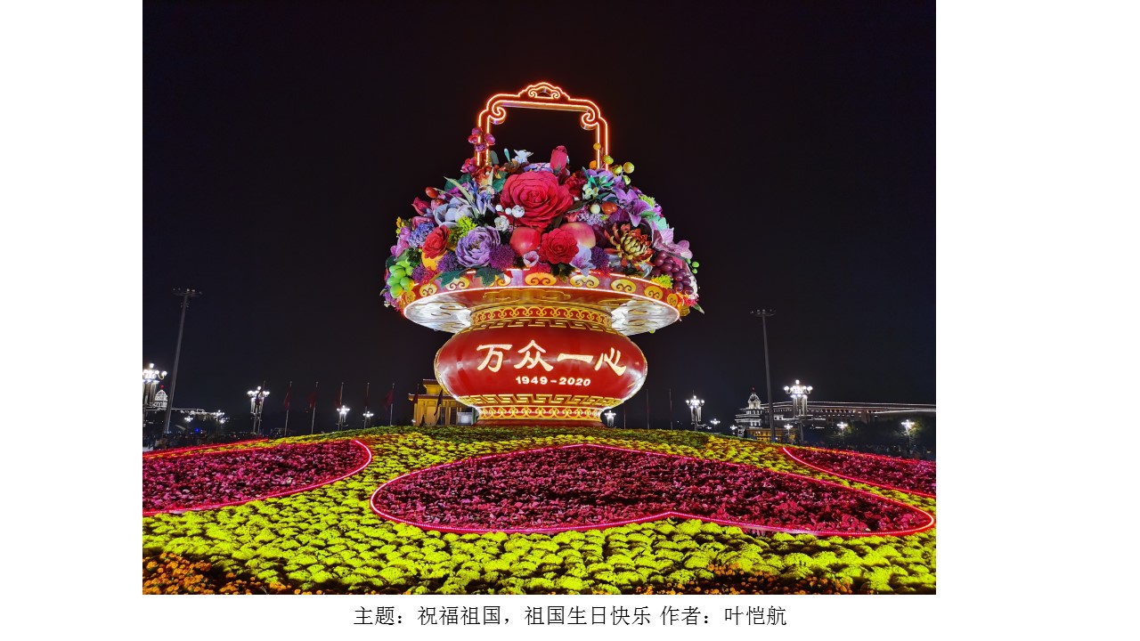 2020 年新年伊始,一场突如其来的疫情,牵动着全国人民的心。上下一心,众志成城,见证着祖国的强大与担当。学校在国庆节期间特组织第二届“我和我的祖国”摄影大赛,以“个人”与“国家”的关系为视角,用摄影的形式生动展现人们的生活变化、展现中国人民追求幸福生活努力奋斗的精神风貌,展现城市风貌、城乡变化……